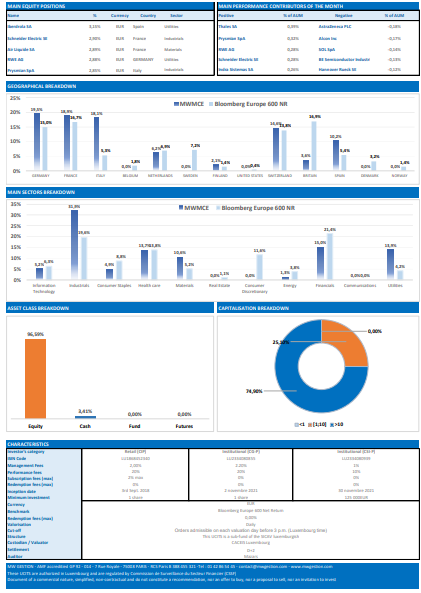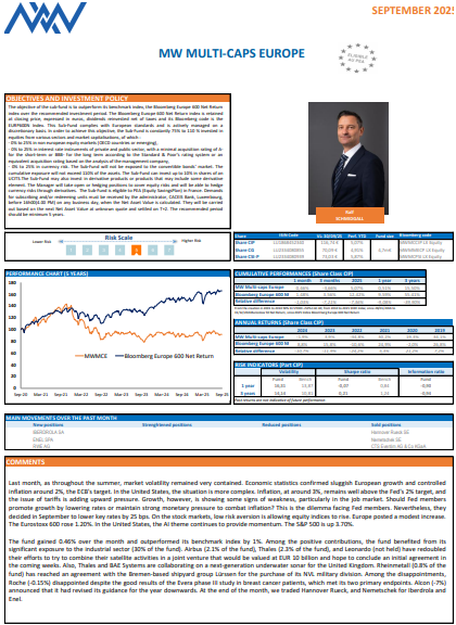 The MW Multi-Caps Europe fund of the Luxembourg SICAV MW ASSET MANAGEMENT is actively managed according to its benchmark, but this does not imply any constraint on the composition of the portfolio, which is left to the discretion of the fund manager.